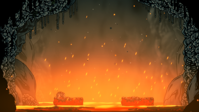 If Hornet, an enemy, or a projectile touches a platform, it is destroyed temporarily. If Hornet falls into the lava, she is transported onto an additional temporary platform in the very centre. | |