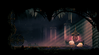 | Enemy gauntlet in northwest corner of The Slab. This variation of the gauntlet is only accessible if Hornet has reached it normally (without being captured) from the Choral Chambers entrance. Requires Key of Indolent. | |