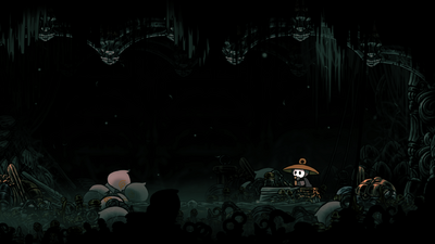 | Optional enemy gauntlet at the entrance to Whispering Vaults which reuses the previous gauntlet's arena. Only appears once the Vaultborn are freed, either by Hornet or in Act 3. If fought in Act 3, some enemies can be black-threaded. | |